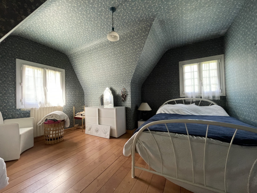 Chaumière sur sous-sol, salon séjour avec cheminée, 4 chambres dont une au RDC , salle d'eau et salle de bains.