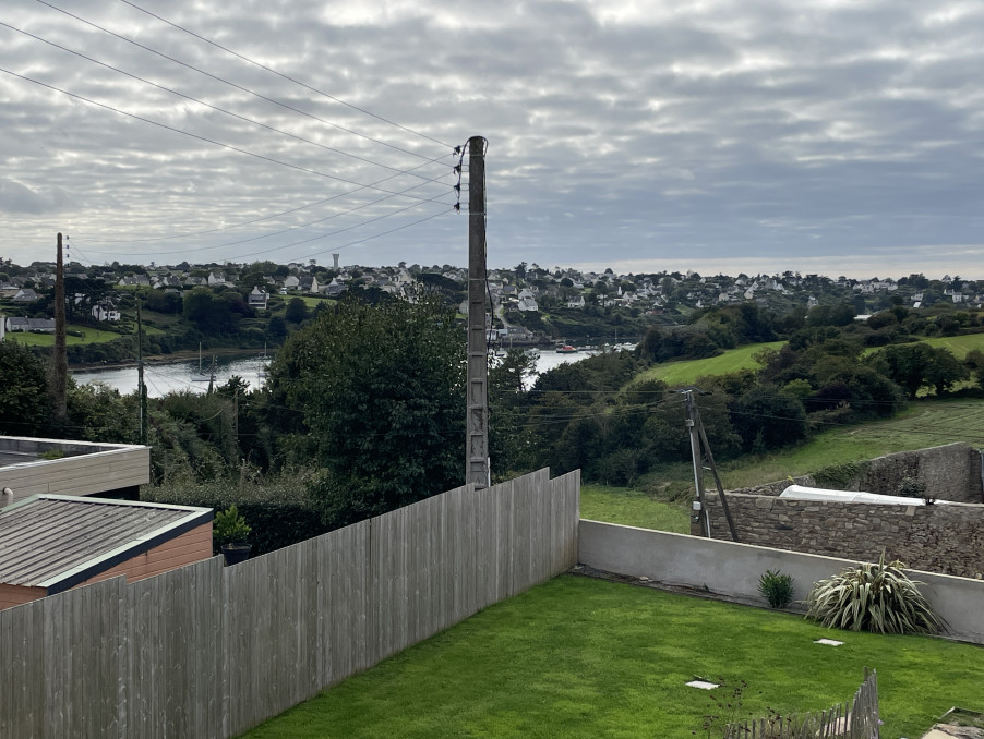 LANNILIS : Quartier prisé. Proximité mer avec petite vue. Maison récente comprenant salon- séjour avec poêle à bois ouvert sur cuisine , une suite parentale; à l'étage : deux chambres avec dressing et salle d'eau chacune, bureau.