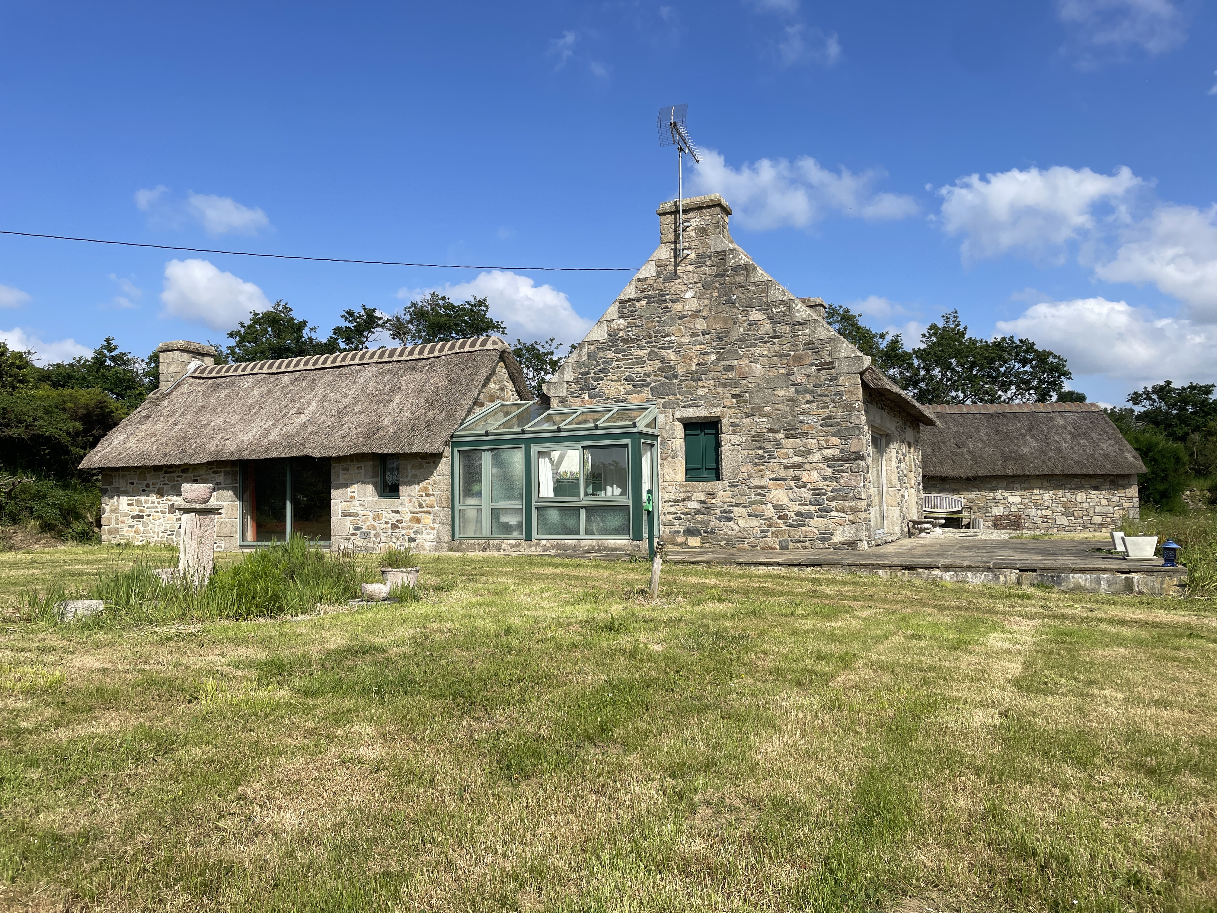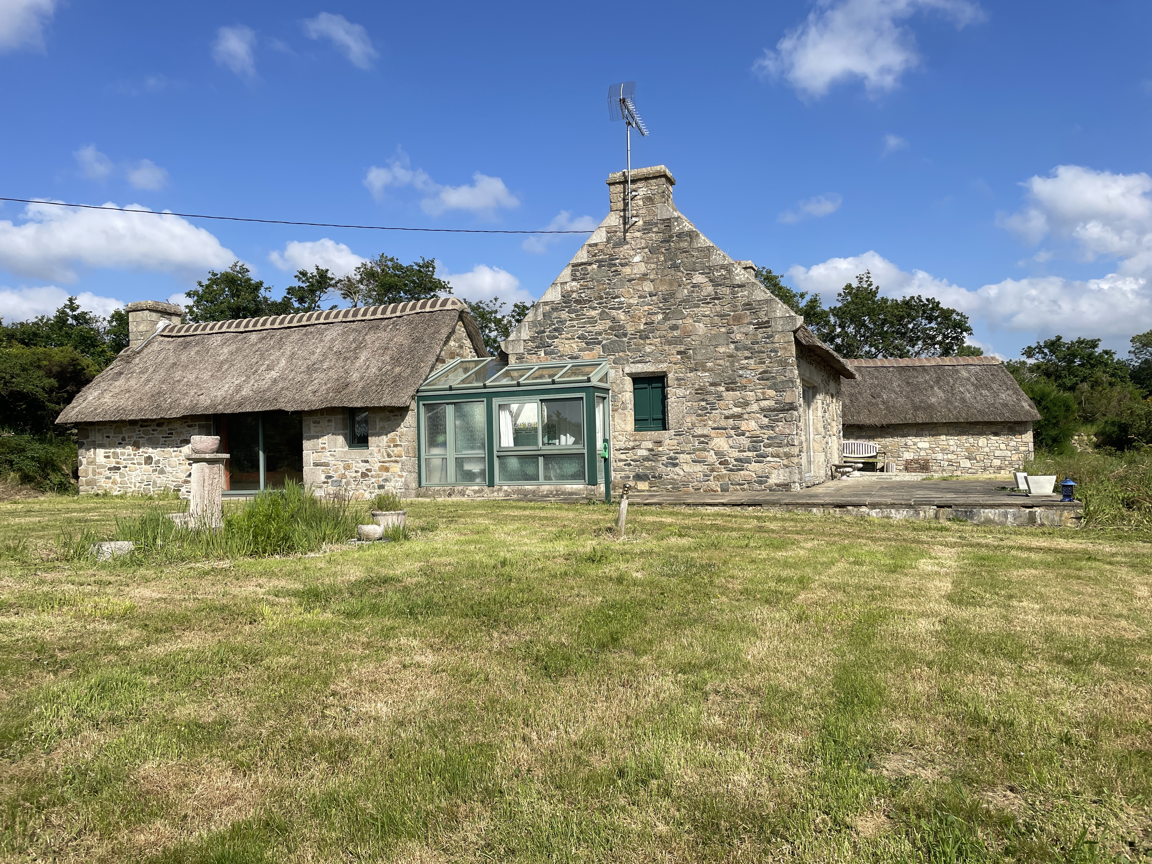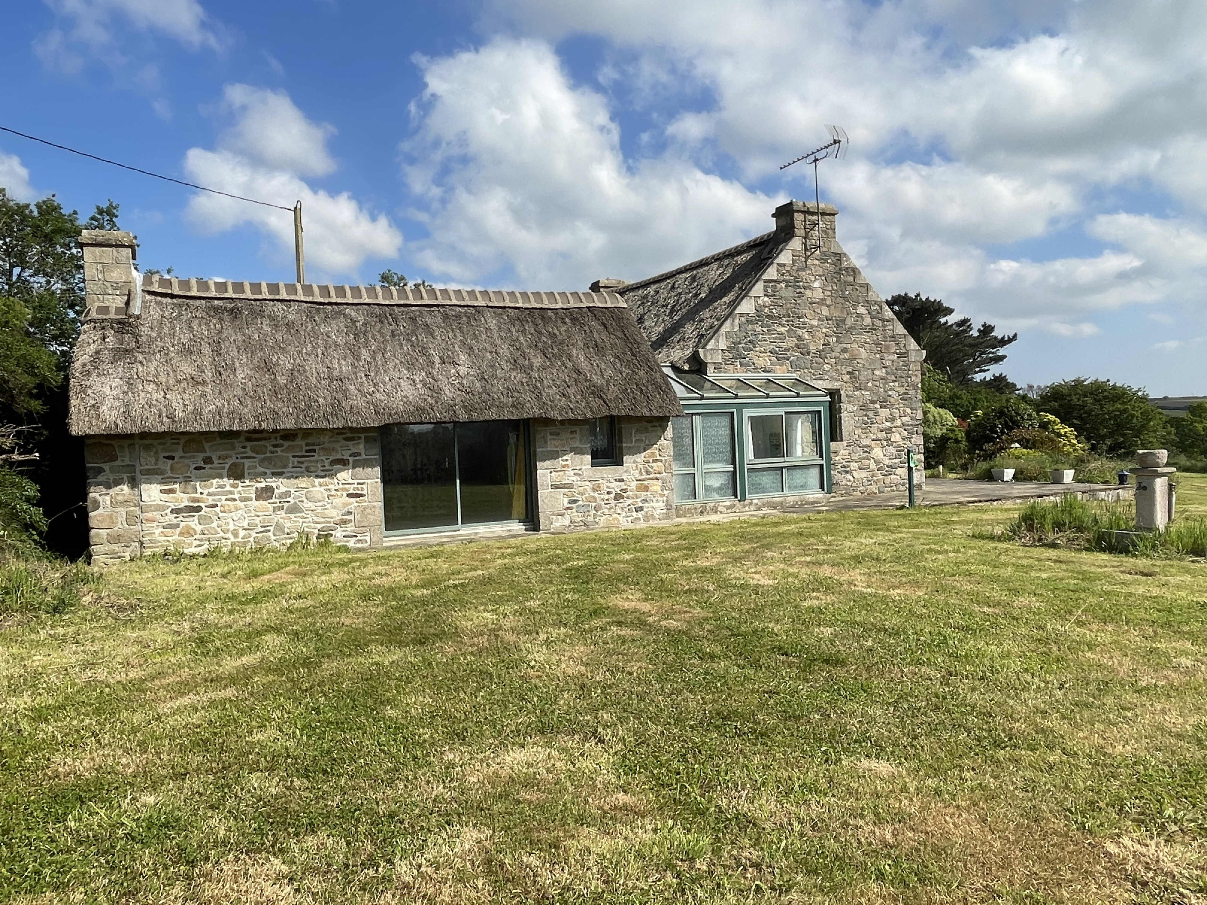 PLOUGUERNEAU : Non loin des commodités. Maison de plain-pied de 3 chambres dont une avec salle d 'eau, salle de bains, cellier. Abri sur jardin.