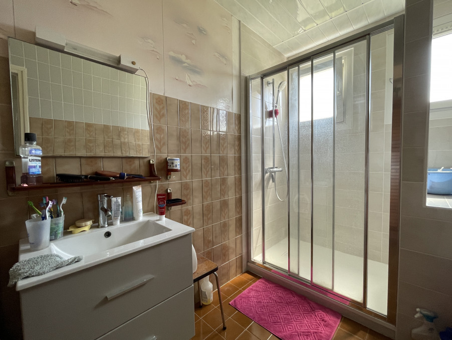 PLOUGUERNEAU : Maison traditionnelle comprenant un salon séjour avec poêle à bois ouvert sur cuisine, une chambre avec salle d'eau; à l'étage : 3 chambres, salle de bains et WC. Garage avec grenier. T...